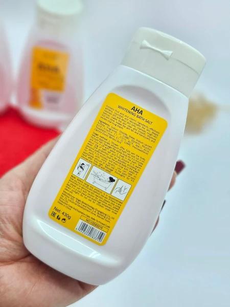 · پس از خیس کردن کامل بدن، حدود ۲۰ گرم (مقدار مناسب) از نمک بدن را برداشته